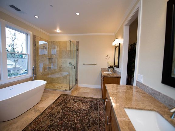 Thoroughly remodeled with high end materials and design. 5 bedrooms and 4 baths with dual master suites. Main level has 2 full bedrooms (one is a large master suite), plus another full bedroom and bath. 3 car garage + RV parking and huge yard on over 1/3 all useable acre. Gorgeous and move-in ready late January.