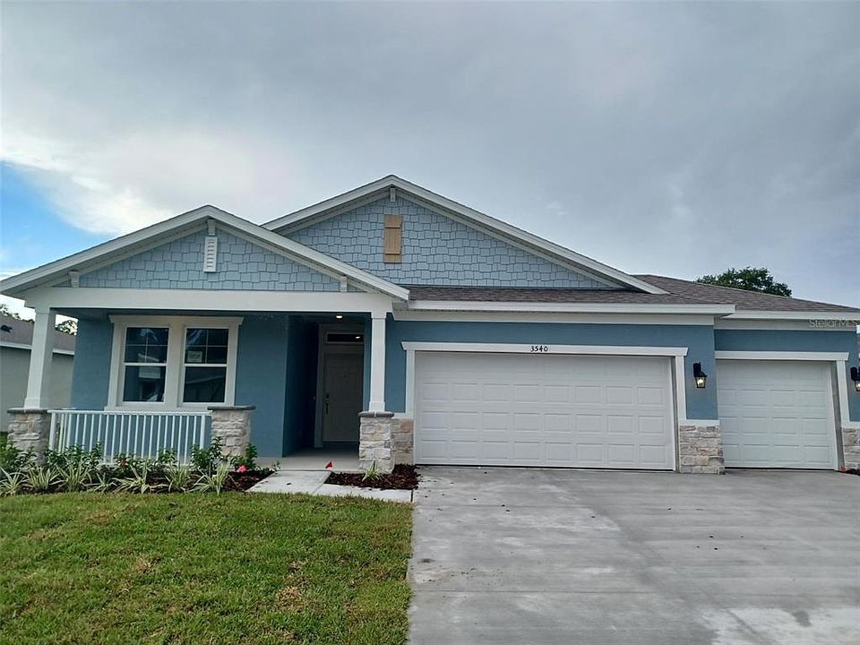 Under Construction. Nottingham Park presents the Robinson. This all concrete block construction, one-story layout optimizes living space with an open concept. As you enter the foyer you are greeted with two guest bedrooms and a guest bathroom with a double vanity. As you head down the hallway, you are greeted with a linen closet and laundry room with doors for privacy. Bedroom four is located off the entrance of the garage. The well-appointed kitchen overlooks the living area, dining room, and outdoor lanai. Entertaining is a breeze, as this popular single-family home features a spacious granite kitchen island, dining area and a spacious pantry for extra storage. This community has stainless steel appliances, making cooking a piece of cake. Bedroom one, located in the back of the home for privacy, has an en suite bathroom with a double vanity, a spacious shower/tub space, and a walk in closet. Like all homes in Nottingham Park, the Robinson includes a Home is Connected smart home technology package which allows you to control your home with your smart device while near or away. *Photos are of similar model but not that of exact house. Pictures, photographs, colors, features, and sizes are for illustration purposes only and will vary from the homes as built. Home and community information including pricing, included features, terms, availability and amenities are subject to change and prior sale at any time without notice or obligation. Please note that no representations or warranties are made regarding school districts or school assignments; you should conduct your own investigation regarding current and future schools and school boundaries.*
