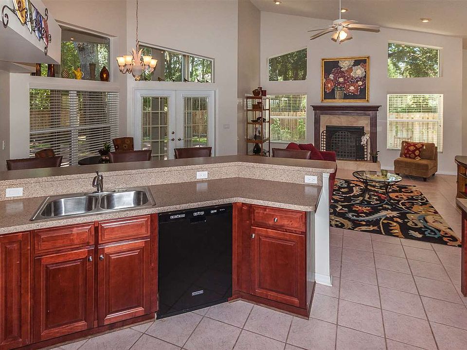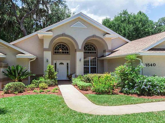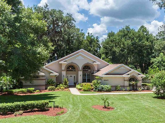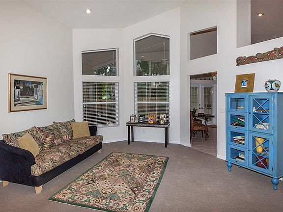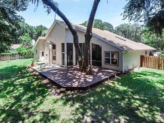The ceilings soar and the light pours into this well appointed concrete block home nestled on over a 1/2 acre in a gated community filled with lush landscaping and mature trees. The home features 4 bedrooms (currently used as 3) and 3 full baths. It has an open floor plan with the kitchen and living area adjourned for family enjoyment. There is plenty of outdoor spaces to enjoy included a covered patio area and a huge deck drenched in the shade of an old oak tree.