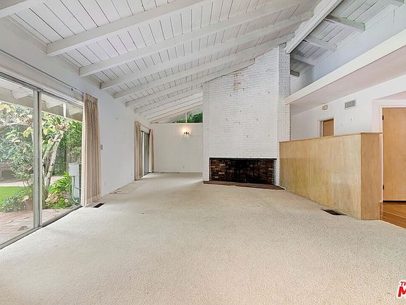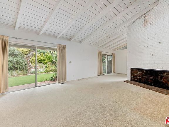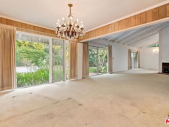 This mid-century gem nestled in the serene hillsides of Mandeville Canyon presents a unique opportunity for restoration or re-imagination. The charming home features classic mid-century architectural elements, including an angular roof line, geometric windows, and white woodwork with red brick accents. A spacious interior unfolds into a dramatic living and dining room with vaulted ceilings and a floor-to-ceiling fireplace, leading to a well-maintained kitchen and powder room. Sliding glass doors open to a private rear yard with lush plantings and romantic red brick patios. Three bedrooms, two full bathrooms, and original mid-century details like hardwood floors and jalousie windows complete the interior. The property, situated on nearly a quarter of an acre in the exclusive Mandeville Canyon area of Brentwood, only adds to the investment potential for this property. Additionally, the home's coveted location provides easy access to all of Brentwood's amenities, Los Angeles' major transportation routes and prestigious schools, as well as Santa Monica's world-renowned beaches.
