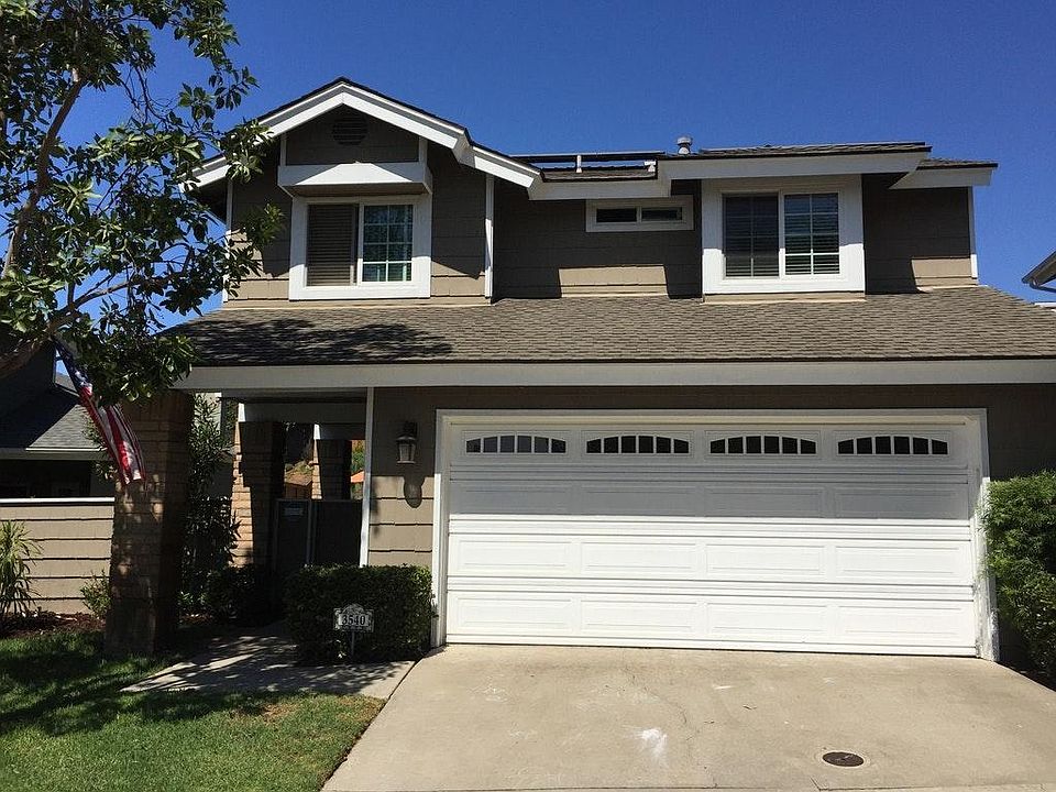 Home near Holmes (Elementary) in Clairemont - just west of Genesee! 4BD/2.5BA 2,066 sq.ft. Detached two=story single family home nestled in a well kept park like serene HOA. Tree lines cul-de-sac. Largest floor plan in the community with dramatic high ceilings. Remodeled beautifully. Natural light flood the home with large windows and skylights. Sit-at island int he kitchen, built in wine refrigerator, separate dining room, living room & family room. Gas fireplace with granite surround fireplace with craftsman oak mantle. Granite countertops in kitchen & bath, separate shower and jet tub in Master, half bath downstairs. Washer & Dryer hookups in the attached two car garage. Paved patio with grass area on the side of the house and beautiful hillside with fruit trees. Home has solar so tenant pays no SDGE bill. Only water. **Lease is one year only. Application: