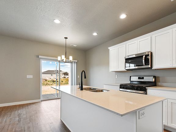 CUTEST townhomes around with amazing amenities! 7 miles of walking trails, 40 acres of open space, new pickleball courts, play area and SO MUCH MORE! Lots of upgrades....LVP flooring, quartz countertops throughout, upgraded gas/stainless steel appliances and lots of storage space. HUGE exterior patio and spacious 2 car-garage. Preferred Lender programs that can get you a GREAT interest rate, call for more information. Come see....while we still have availability!