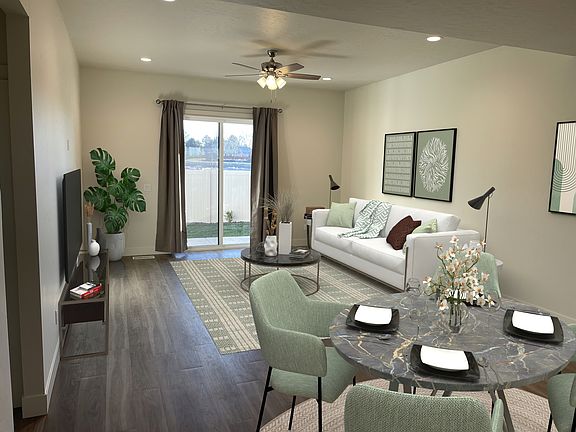 One year old 3 bedroom, 2 bath. Approx. 1600 sq ft. Includes insulated 2 car garage, fenced yard and covered patio. Each unit features quartz counter tops and laminate flooring in main leaving area for easy upkeep. Also included are stainless steel appliances, washer/ dryer units, gas heating, central A/C and a handy sink and storage closet in the utility room. Located in SW Boise at 3540 S. Seabiscuit, Boise, ID 83709. Details: $2200 monthly rent Deposit - $2200 2 car garage Fenced yard Tenant is responsible for all utilities and Yard Maintenance Lease term: 1 year minimum. No smoking, vaping etc. Pictures with furnished are digitally furnished. 3540 S. Seabiscuit, Boise, ID 83709. Tenant is responsible for utilities and Yard maintenance.. No smoking or vaping.