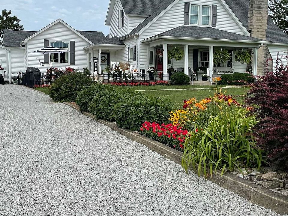 Charming farmhouse with 4 spacious bedrooms and 2.5 baths. Mail living area has a open floor plan that is perfect for entertaining family and friends. Kitchen is fully equipped with Amish cabinets, modern appliances and ample counter space for meal prep. Each bedroom has its own unique character and charm. The primary bedroom is on the main level with is very own recently renovated bathroom with stylish fixtures and finishes, along with a walk-in closet. Your patio as custom stamped concrete patio is large enough for family and friends to hang out while you're grilling this summer. The large yard is perfect for all of your outdoor summer activities. Modern plus rustic farmhouse equals the ideal home!