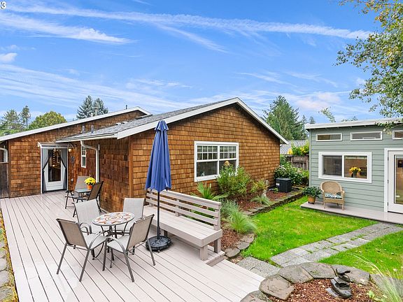Welcome to this timeless, charming bungalow in sought after Multnomah Village. You will find the perfect blend of modern updates and classic charm all a 5-minute walk to the vibrant local shops and restaurants of the village. This home is all about efficiency & functionality yet adorned with elegance and timeless beauty. Walk into a cozy formal living room with berber carpeting & the ambiance of a gas fireplace. The gorgeous open concept kitchen & dining room is a well appointed space perfect for family and friends to gather. The tasteful updates include granite counter tops, newer stainless steel appliances, the hardwoods add warmth and beauty to the space. Both baths are fresh and elegantly dressed in grey and white marble finishes. The primary bedroom boasts an ensuite with double closets w/ organizers providing ample storage. Special feature: Custom built outside office, (additional 99 sqft blt-2022) fully insulated and equipped with mini split for heating and A/C. The 2 car attached garage has the epoxy floor coating and added cabinetry and overhead storage. The outdoor extended living is truly magical with manicured landscape, blueberry bushes, flowering perennials and multiple spaces to sit with your morning coffee or evening wine. This one level charming bungalow is truly a rare find!