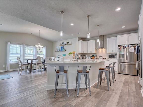 This pristine and airy open concept Elmhurst model features a gourmet kitchen with 5 burner gas cooktop, double oven, stainless steel range hood, quartz countertops & large island open to light filled morning room, great room, dining area w/adjacent study/office. Spacious 2nd floor en-suite primary bedroom w/vaulted ceiling includes 2 walk-in closets, double sink, walk-in shower & soaking tub. 3 generously sized additional bedrooms, laundry room, & hall bathroom complete the 2nd floor. Outside space has a beautiful covered rear porch and amazing stone patio and fire pit! LVT throughout 1st floor, laundry room, Tankless hot water heater, gas log fireplace in great room with surround sound wiring. Includes fully sodded yard & fenced in backyard. Ready for Move In.