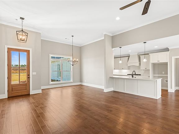 Welcome to the new phase of Andrews Estates in Opelika! This luxurious new construction home offers the perfect blend of comfort and elegance. Once inside, you are greeted by an open floor plan with soaring ceilings and an abundance of natural light. The stunning living room has a cozy fireplace, and nearby, a gourmet kitchen boasting stainless steel appliances and custom cabinetry, not to mention quartz countertops and a gas stove! Also on the main level is the lavish primary suite, offering a spacious bedroom, spa-like bath with a relaxing tub and separate shower, and large walk-in closet that connects to the laundry room. Opposite the primary bedroom is 2 secondary bedrooms, both with walk-in closets, sharing a full bath. The upstairs offers the 4th bedroom, with a full bath, and a spacious bonus room. Outside you have a covered back patio, offering a view of the neighborhood pond! This home won't show on your GPS, so search "Tre'von Court, Opelika, AL" and Tyler Ct is 1 street over