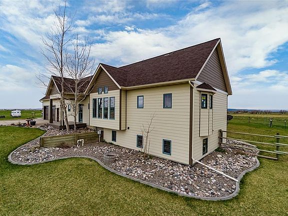 Horse property 12-15 minutes from Billings- Open and spacious 5 bedroom/3 Bath home- outbuildings & ditch fed water reservoir, this 10 Acre property is perfect for family & hobbies. Main floor living includes laundry w/adjacent mudroom, office, hobby room, awesome master suite w/jetted tub & a walk in closet. Entryway has natural timbered stair rails & stone flooring & back covered deck, perfect launchpad for coffee sunrises or evening sunset hangouts. Inside, reclaimed wood floors are balanced by soaring vaulted ceiling. The perfectly positioned kitchen is the anchor of the house. A kitchen island is perfect size to transition into the huge living room. Also: geothermal heat/AC, central vac, fenced backyard, UGSP, new roofing/hardi cementboard siding, radiant floor heat in garages, additional parking, barn/stables with tack room, loafing sheds, storage shed. Ask agent for more details