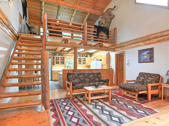 Wonderful opportunity for close in secluded country property. This beautiful log cabin features 3 beds 2 baths with wonderful space to entertain. Main level living features master suite, open living, updated kitchen, vaulted ceiling and more. Large detached garage/ shop offers vehicle lift, work bench, and 12' doors. Covered RV Parking, gazebo and fenced yard. 1.54 acres at end of rd with year round creek running length of property backing to thousands of acres of timber lands.