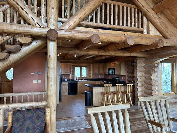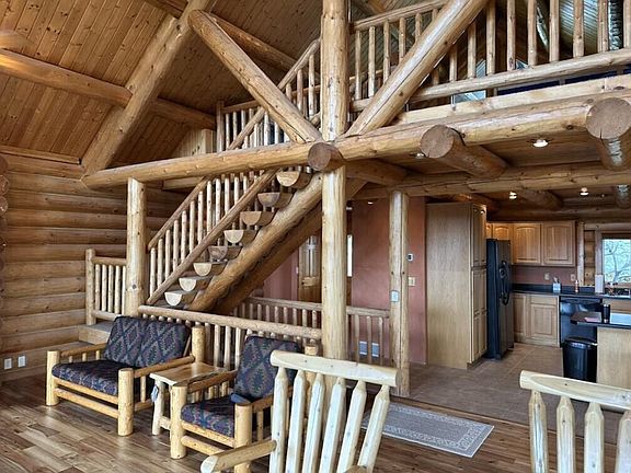 Escape to this 2004 hand-peeled log home with Missouri River views! Features 1,647 sq ft on the main level + loft, and a 1,407 sq ft walkout basement with 3, 1, and a game/family room. A Private Retreat Crafted in Timber and Stone