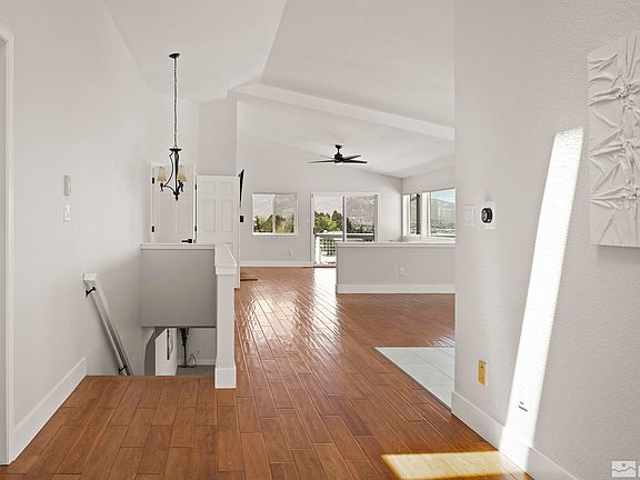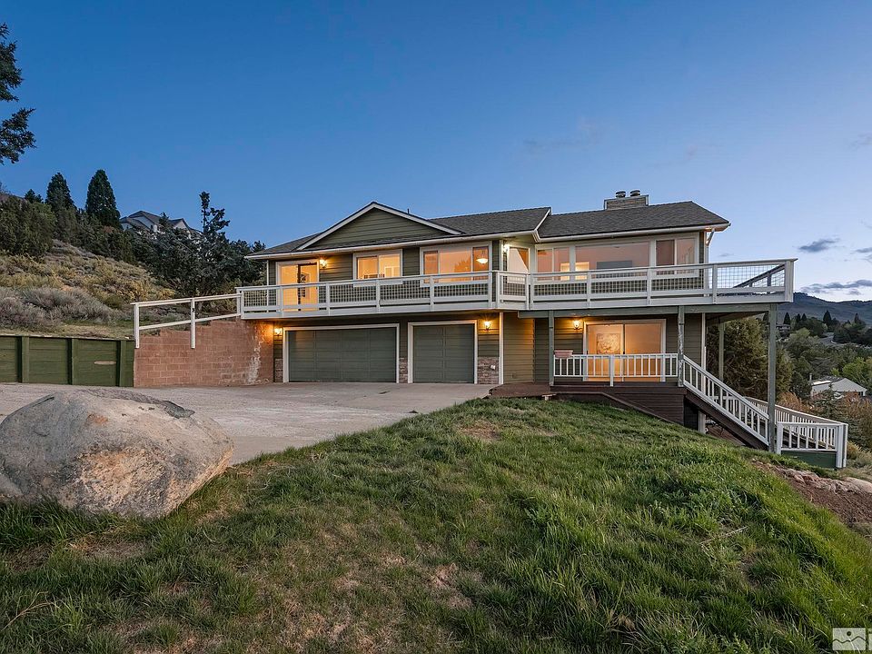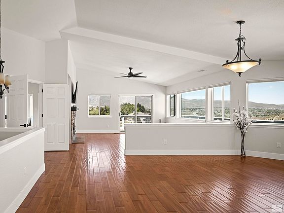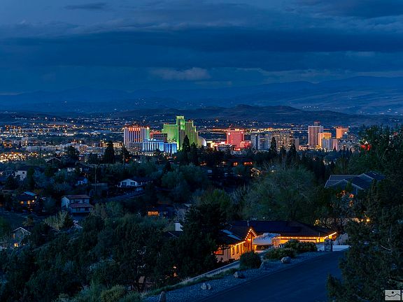A view like no other! Perched along a scenic hillside, this recently remodeled and reimagined home takes full advantage of the panoramic views of Reno's cityscape, valley, and nearby mountain ranges. The main level welcomes you with an open-concept layout and dramatic vaulted ceilings, featuring a spacious living area with a gas log fireplace, master bedroom, guest bedroom, and a chef-inspired kitchen—all designed to maximize the views and natural light., The heart of the home features a chef's dream kitchen adorned with sleek natural quartz countertops with contemporary waterfall edges, and top-of-the-line luxury appliances, including a gourmet Kitchen Aide cooktop in the island, built-in state of the art GE Wi-Fi double ovens, a new built-in Viking refrigerator and Bosch dishwasher. Retreat to the master suite where you can cozy up in sitting area in the bay window to enjoy the views and gas log fireplace, or indulge in the fully renovated master bathroom. The master bath features a lavish 64-inch Signature Hardware Winifred freestanding tub, designed to the maintain water temperature longer for extended relaxation. New spa-like multiple head walk-in shower with frameless sliding glass doors, dual slab granite vanities with undermount sinks, brushed nickel faucets, cabinet hardware and light fixtures, and contemporary large-format tile floors to complete the ambiance of this well thought out space. Descend to the lower level to discover a haven of relaxation and entertainment, complete with a spacious game room with an in-set wet bar and two additional bedrooms, offering ample space for family and guests. Additional upgrades abound, from new carpet and paint throughout to modern blinds, a new roof installed in 2019, repainted decks, modern ceiling fans in the living room and master bedroom, new baseboards, and a completely remodeled downstairs bathroom featuring a contemporary shower with frameless sliding glass doors, slab granite vanity with an undermount sink, and brushed nickel fixtures. For added convenience, a Samsung washer and dryer set are included in the sale. Car enthusiasts and hobbyists will delight in the oversized three-car garage, featuring an additional workshop area. Nestled at the end of a tranquil cul-de-sac, this home offers the perfect blend of privacy and convenience, with plenty of parking space for guests and residents alike. Seller has surveyed the boundaries and it is available upon request. Don’t miss your opportunity to call this call this your new Reno home!