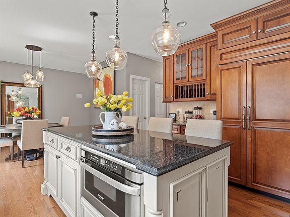 Welcome to the incomparable Plantation model in the Coves of Algonquin where elegant luxury meets timeless design. Perfectly located near the Randall Rd corridor, close to everything, yet tucked away in a scenic tree lined neighborhood. Huntley School District 158. As you approach the home, you're greeted by meticulously manicured landscaping and a striking brick facade. The property sits on a spacious lot, just under half an acre, providing ample privacy and an inviting atmosphere. The expansive concrete driveway leads to a 3.5 car attached garage, offering plenty of space for parking and storage. A 9' custom THERMA-TRU front door welcomes you to a bright 2-STORY FOYER, beautiful staircase and the formal living and dining room. Real HARDWOOD floors, CUSTOM millwork and cabinetry, architectural details, exquisite finishes and large windows throughout are just a few things that set this home above the rest. OPEN-CONCEPT layout features a GOURMET kitchen, trimmed out with the finest moldings, sunny breakfast room and a family room with a soaring floor to ceiling STONE FIREPLACE. Your kitchen is going to be the star of every party! With the top-of-the-line KRAFTMADE cabinetry, GRANITE counters, a large center island with a breakfast bar, and professional appliances, SS 6-burner THERMADOR range, built-in SUB-ZERO refrigerator, built-in DW and MW, this kitchen will stand a test of time ensuring the classic look and quality that lasts. Walk-in PANTRY offers yet more storage to an already large kitchen. In addition, the main level offers a 16 x 12 DEN/OFFICE featuring wall to wall custom-built cabinetry w/ inset doors, desk and even more space for a seating area. Absolutely perfect for your next home office, flex room or a 6th bedroom. MUD ROOM is located just off the garage. The second level will impress you with the made to measure PLANTATION SHUTTERS in all rooms, HARDWOOD floors and open gallery style hallway connecting the DUAL STAIRCASE offering views of the foyer and the family room. Enter the gorgeous PRIMARY SUITE through DOUBLE DOORS and enjoy the spacious suite with VAULTED ceilings, DUAL WALK-IN closets and a fully UPDATED bath with a modern soaker tub, expansive shower, dual vanities and a commode room. Two other bedrooms are connected by a RENOVATED full Jack &- Jill style bath, highlighting a RESTORATION HARDWARE cabinetry, GRANITE counters, dual sinks and a custom-built shower. The fourth bedroom is located at the end of the hall and features a WALK-IN closet. This home also includes A FINISHED BASEMENT, offering an additional 2,000 sq ft of living space, including the 5th BEDROOM, A FULL BATHROOM, 2nd KITCHEN and a GREAT BIG SPACE perfect for games, entertainment and multigenerational living. 3.5 CAR GARAGE is decked out with EPOXY floors and extra cabinetry for storage. The FENCED backyard is a true oasis for relaxation, presenting a large patio area, lush lawn, mature trees, HOT TUB and a FIRE PIT. Perfect outdoor space with a peaceful setting, designed to help you unwind after a long day or have a great big party. NEW ROOF AND HWH IN 2023! Call us to schedule your showing today!