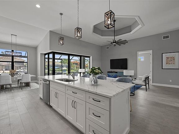 *GULF ACCESS* NEW CONSTRUCTION 3 Bed + Den, 3 Full Bath, Pool Home on the Ceitus Canal. Step outside to your very own oasis with a Saltwater pool and spa, perfect for relaxation and enjoyment. The brick paver lanai features an outdoor kitchen and an extended area, providing ample space for sunbathing and entertaining guests. Inside, the house boasts 10-foot ceilings with elegant tile throughout. Impact windows and doors not only add a touch of sophistication but also ensure safety and security. One of the highlights of the property is the 90-degree pocket door access to the lanai and pool, a fantastic feature for seamless indoor-outdoor entertaining. The North Utility Expansion Project has been recently completed, ensuring the availability of city water, sewer, and irrigation for the entire area. The home boasts a new seawall and a state-of-the-art multiple zone irrigation system. Property is situated within walking distance to two popular city parks. Explore the joys of kayaking or boating, as the Gulf, Pine Island Sound, and Matlacha Pass are all within reach without the hassle of a "Miserable Mile."