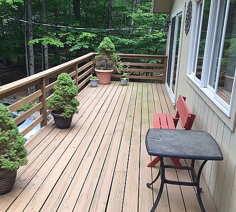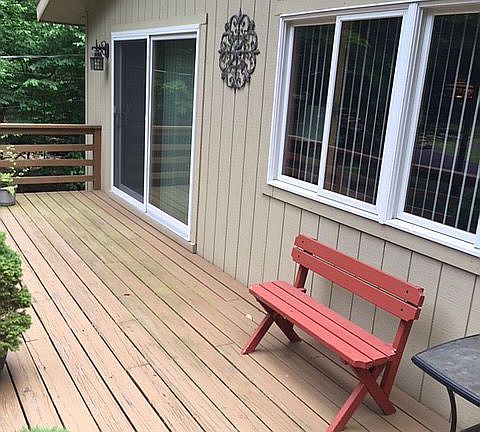 move in ready home....This Unique home...This is a completely renovated rare "upside down" home.... meaning a bathroom , the living room, kitchen and dining room are all upstairs in a beautiful open floor plan setting with beautiful new wood flooring and the bedrooms are downstairs. Each floor has a full bathroom. The main living area is wrapped with a beautiful expansive over 900 sq ft of wrap around deck. The first floor has a beautiful covered deck with a swing. This home has all new Anderson Window and Doors (unlike most homes which still have the builders low grade windows). New bathrooms, gas fireplace, hot water heater, roof, high efficiency base board and appliances. Located in a very quiet area of the Hideout. You can walk to the clubhouse, fitness center, golf course and recreation center. Move in condition! Unlike many of the homes you see... with old paneling and dated bathrooms and musty smell! HOA fee: $1803 Taxes: approx $2361