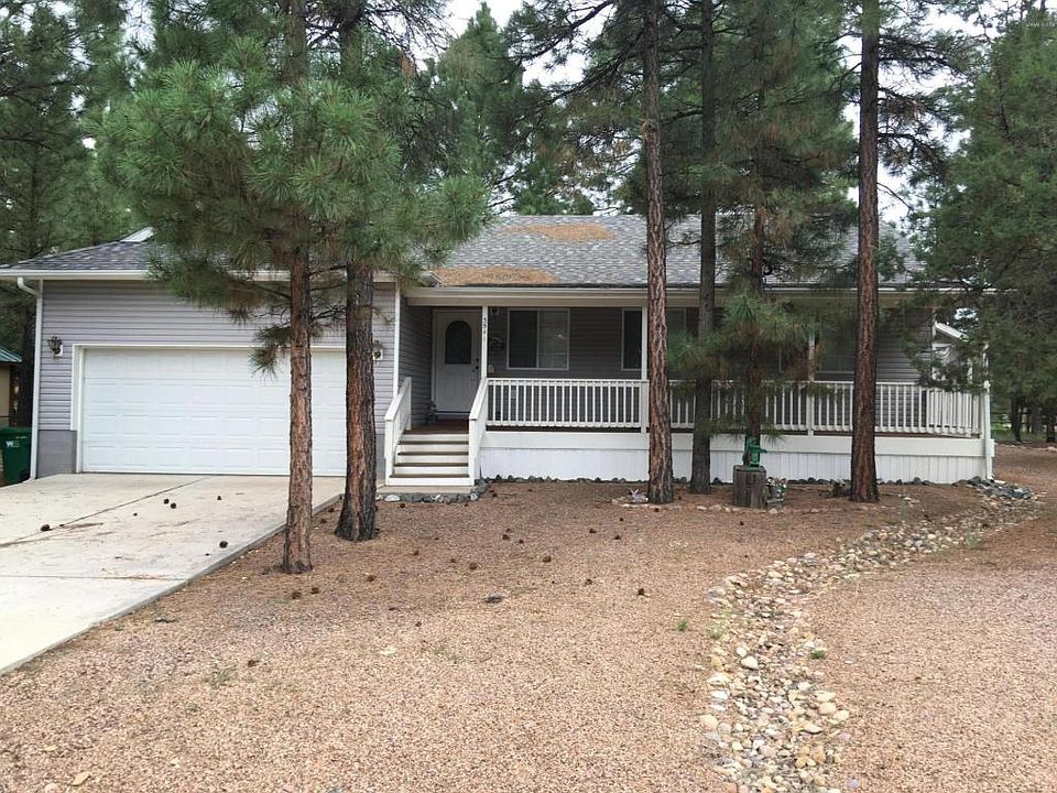 Beautiful low maintenance treed home on the 3rd Fairway in Show Low Country Club ( Bison Golf Club). 3 bd, 2 ba slit floor plan 2 car garage with concrete driveway with vinyl siding. Refrigerator and washer are included. There is an 8X12 storage shed to the North side of home painted a matching color. Large covered decks on front and back to sit out and enjoy the fresh air. A very comfortable home for the full time resident or seasonal buyer. A must see to appreciate. Please call for an appointment to see today. Furniture may be purchased separately.