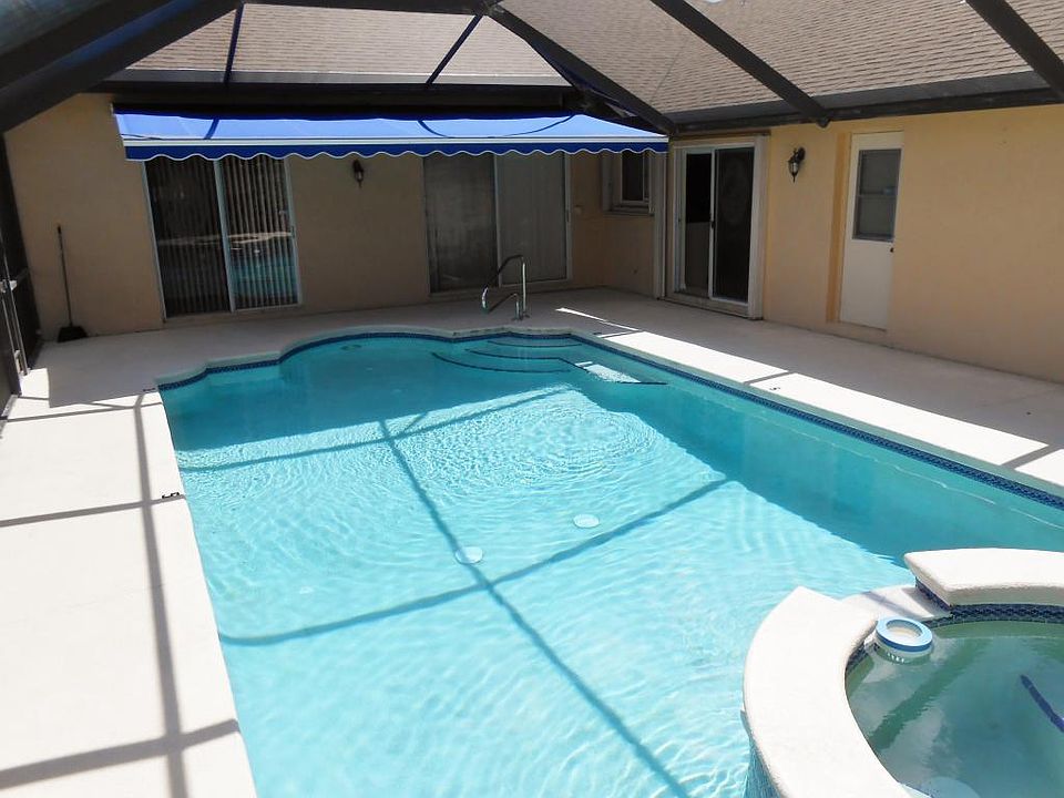 Spacious floor plan with fenced in yard, pool and hot tub. This split floor plan has cabana bath, formal living and dining room, great for entertaining! Patio has retractable awing and pool and lawn maintenance are included in rent! First, last and security.