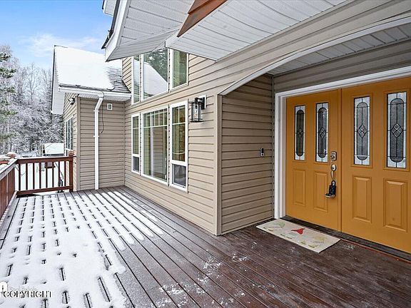 South Anchorage Beauty! You will appreciate the privacy of this recently modified home to include an 830 sq. ft addition!Located on a large wooded lot, in a great location off O'Malley.Enter into the spacious and Incredible great room with Hickory flooring, gas fireplace with custom mantle, high vaulted ceilings, powered blinds and den or office featuring wanes coating. Continue into the new formal dining room with wood stove, brick accented wall with continuous vaulted ceilings and continue into the new kitchen with custom oak cabinetry, crown molding, full granite countertops, breakfast bar, and Big Chill Appliances with a "retro" style and look. Enjoy the covered Trex deck off the kitchen, with a knotty pine ceiling, can lighting to enhance the ambiance on those days for BBQ's and entertainment. Oversized pantry with plenty of shelving and an additional Viking Refrigerator. Elevator from garage to kitchen and easy access to the expanded laundry room, offering large folding counter, extensive cabinetry, florescent lighting, washer & dryer included. Two bedrooms and guest bath on main level and access upstairs to the private master suite on the upper floor for added privacy. Separate walk-in shower, jetted tub and walk in closet for ease. Access lower level through a tri level staircase, access to back yard and hot tub, included. Lower level offers a large family room, wired for speakers, storage room with sauna, included. Home office and three oversized garage bays, ¾ bath, custom handmade hickory cabinets in garage and additional stairs to access off the kitchen. Inground sprinkler system,fenced back yard, oversized wood shop 12' X 26' with electricity, separate breaker panel, secondary shed, 10' X10'. Fenced area in back yard, previously held a chicken coop. New front door and interior paint throughout, some new light fixtures and can lights installed. Blinds throughout, great room is powered. Call today, easy to show!