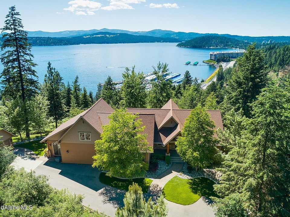 Come enjoy this place of peace. Sited at the end of cul-de-sac with stunning westerly views of Coeur d'Alene Lake. This 2.526 acre property offers 4 bedrooms, 3.5 baths and 4040 square feet. Sit by the fire in the living room or enjoy a great book in the library area. Main floor master bedroom with walk- in closets and spacious bathroom. Kitchen opens to stunning lake views and features a gas stove, stainless-steel appliances & large walk-in pantry. Family/rec room has a 300 capacity wine cooler, 2 car detached garage with bonus room above. Sit out on the deck for the sunset, or just enjoy the firepit and beautiful landscaped garden. All of this with privacy and near Centennial Trail, Downtown, Restaurants, Shopping, and easy freeway access. This residence is the perfect place to call home. Additional 2.003 acre parcel can be negotiated.