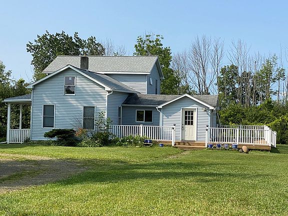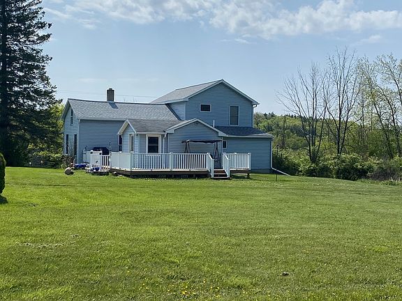 Peaceful country living! This home on 5.5 ac is less than 10 minutes to Corning. The main floor features a large eat-in kitchen, formal dining room & nice sized living room. Two first-floor bedrooms, full bath & a laundry area. The entire second floor is a bedroom w/space to add a bathroom for an owner suite. Basement windows & hot water tank done in 2022. Main roof was replaced in 2019 along w/a new electric panel & line to the two-car oversized garage w/space for a workshop. The furnace was replaced in 2018. Price reflects some work needed.