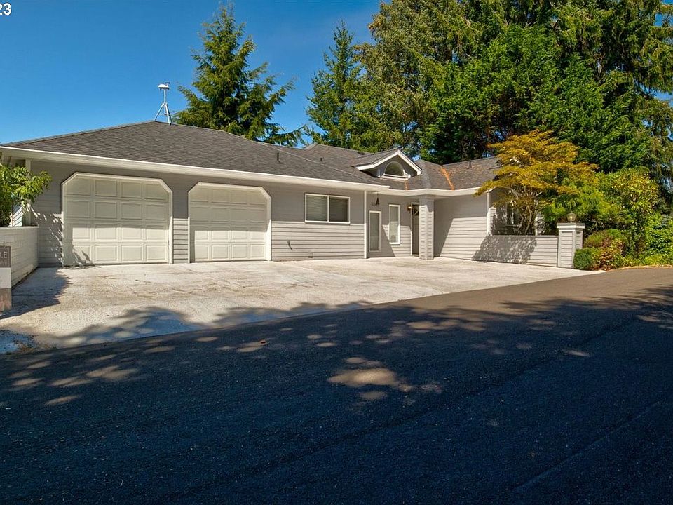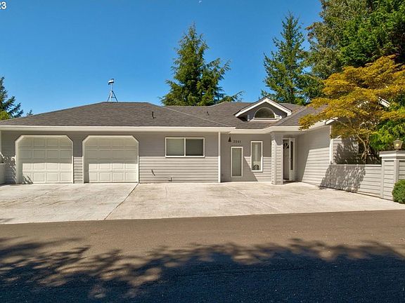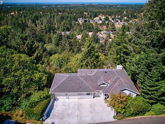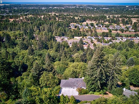 Come enjoy expansive views of Florence all the way to the Pacific Ocean! Located in the quiet and secure community of Rhodowood Dunes, this home has a lot to offer. A large master on the main floor, open living area with large windows showcasing panoramic ocean views! The lower level has two more bedrooms, huge great room, and a large office (of 4th bedroom) with a library, study and private deck. Two additional lots (one on either side) being sold with the home at no additional cost, offering even more serene privacy and value. Very close to Ocean Dunes Golf Course.