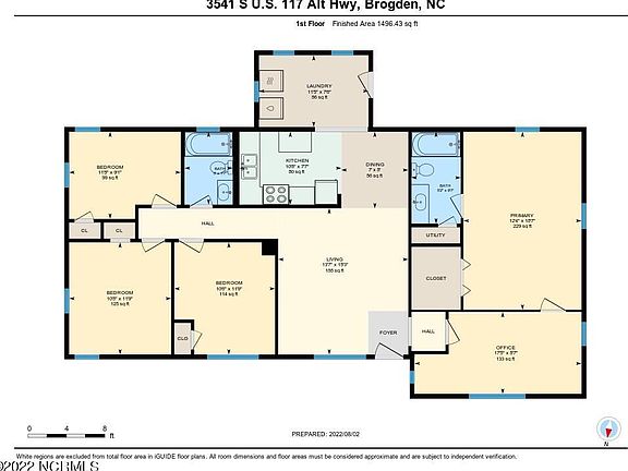 Great opportunity to own a 4 bedroom ranch with 2 full baths. Large laundry/utility room and a large living room, and it has a office/den off living room that leads to large master suite with walk in closet. Partially fenced back yard, and metal carport with rear storage. Good location with easy access to Goldsboro and Seymour Johnson AFB, Smithfield, Mt Olive and surrounding areas.