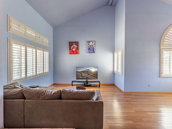 Stop the car! This 3+3 has lots of upgrades, a large lot and a garden like yard! The 3rd car garage has a pull through garage into the back yard that is perfect for summer toys or entertaining. Custom flooring throughout, granite counter tops in kitchen, custom wood sliding door, plantation shutters throughout, gas fire place and tons more! Come see this gem while it lasts.