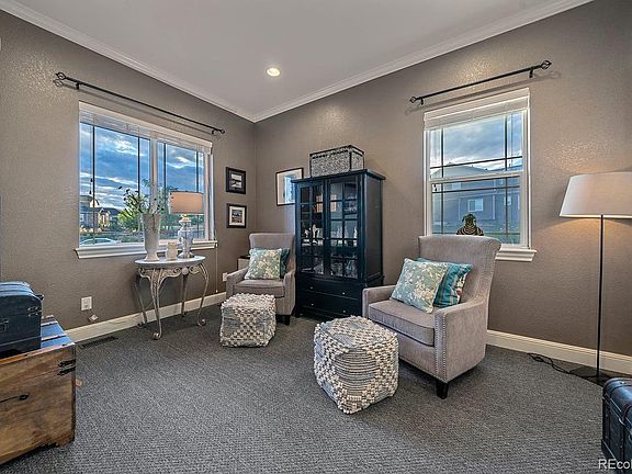 - Description: Formal Living Room With Crown Molding, New Carpet And Paint