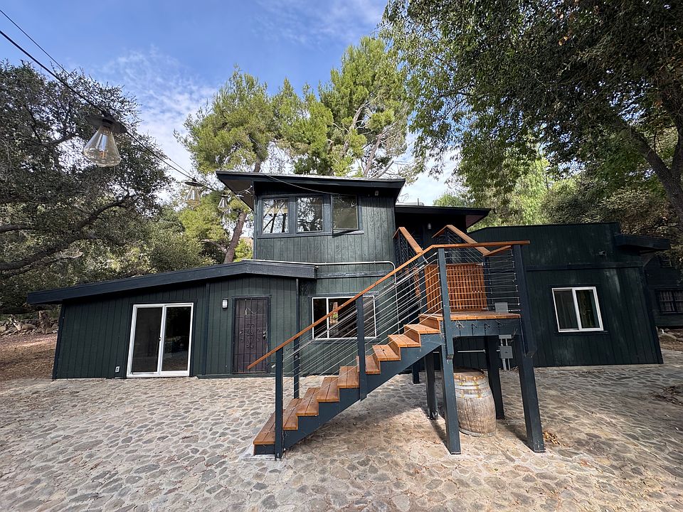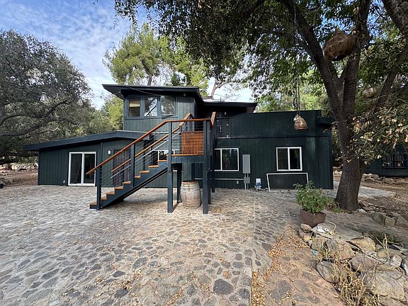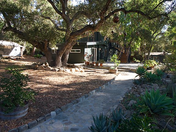 Available furnished or unfurnished (Can be furnished through local Ojai interior designer - separate contract) East End Oasis on private road A Unique and Rare Opportunity Nestled on over an acre of lush, mature trees, this private, recently renovated Ojai compound offers a serene escape with exceptional amenities. The main home features an open-concept layout, including a spacious living area, dining room, and a large/updated kitchen with new cabinetry and a cozy potbelly stove. 3 bedrooms on the ground floor level and master suit on the first floor. Bathroom is newly remodeled. The Master Bedroom is a sanctuary in itself, featuring an exterior staircase with a brand-new, stylish master bath, abundant storage, a sitting room, and a wrap-around deck that immerses you in privacy and treetop views. This can also be used as a private retreat, atelier, or granny flat. Enjoy your gorgeous Japanese cedar hot tub surrounded by a beautiful custom stone patio, perfect for relaxation. New outdoor shower is just outside the two main floor bedrooms. Additional structures on the property include a dedicated office/study, an art room, a storage house, and a quaint chicken coop. Unique spaces like an art barn, safari tent, and an Airstream trailer provide additional guest accommodations or creative retreats. Convenience of a 2-car carport, private fencing, and an invisible fence system for dogs because we know pets are part of the family too. We welcome leases of 12 months or more and are open to discussing specific needs to ensure this space feels like home. Thank you for your interest. Please be mindful of our close-knit community and respectful of the neighbors. Terms can be negotiated based on your specific needs.