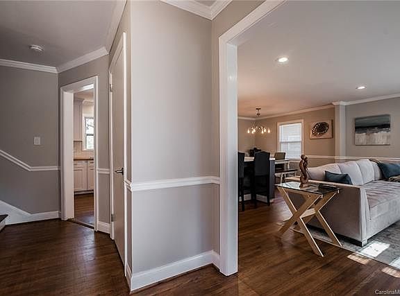 Buyers will raise their hands for this sleek raised ranch in an established community with a short commute to Uptown Charlotte. AKA a split level home, it makes the best use of available space. Owners enjoy their bedrooms being totally separate from common living spaces. Gracious entry gives way to original wood floors underneath smooth freshly painted ceiling. Huge NEW windows keep the vibe light and bright. NEW Corian & butcher block counter tops make a dramatic statement next to its porceline herringbone backsplash. Your inner chef will love the pot filler! Matching GE Profile black chrome appliances & white cabinets w/ china views complete the full look! Anticipate enjoying the spa-like master suite & shower w/trench drain. Take a short flight down to the comfortably huge rec room. Separate laundry with folding table. Every occupant will enjoy this carpet free home. Well suited for those who value outdoor space as a precious commodity, lot allows space for expansion.