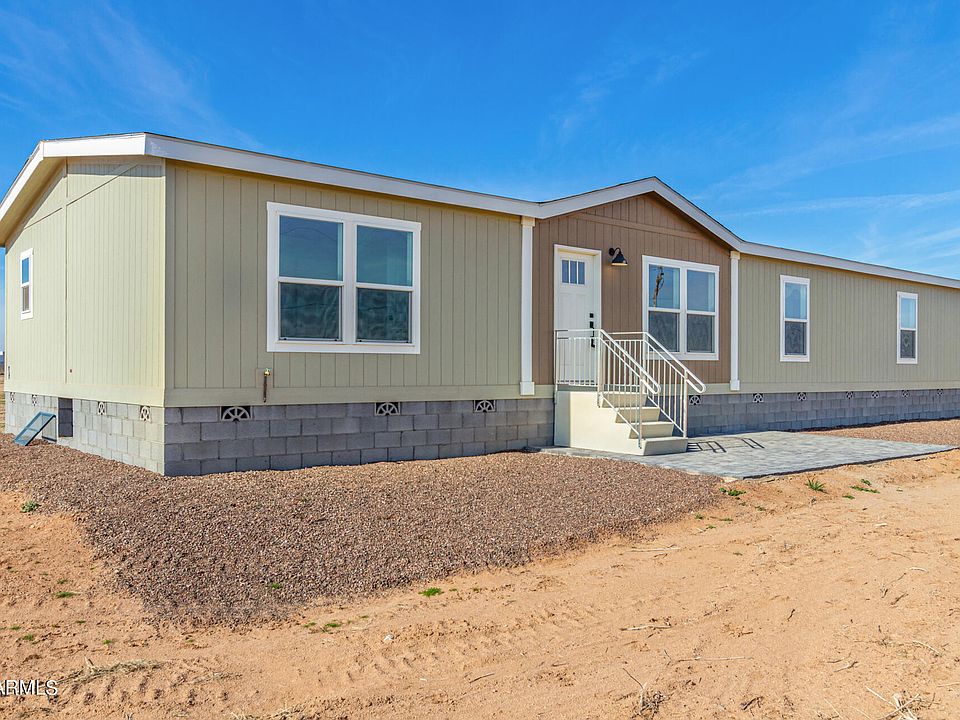 BRAND NEW MANUFACTURED HOME LOCATED ON JUST OVER ONE ACRE IN ARLINGTON, AZ. FLOOR PLAN IS 4BR/2BA ''YELLOW SUBMARINE'' MODEL WITH 2,002 SQ FT OF LIVING SPACE. OPEN KITCHEN WITH BREAKFAST BAR AND DINING AREA. HOME HAS MODERN DESIGN & NEUTRAL COLOR SCHEMES. PRIMARY BEDROOM HAS WALK-IN CLOSET & PRIMARY BATH INCLUDES DUAL VANITIES WITH SEPARATE TUB AND SHOWER. CONVENIENT LOCATION WITH NO HOA! PRIVATE WATER CO. *PHOTOS OF SIMILAR UPGRADED HOME, ACTUAL PROPERTY MAY VARY*DIRECTIONS: DOBBINS RD/355TH AVE - SOUTH ON 355TH AVE, EAST ON STEINWAY TO 2ND HOME ON NORTH SIDE OF STREET. USE MAPS & GPS COORDINATES 33.353632, -112.814727.