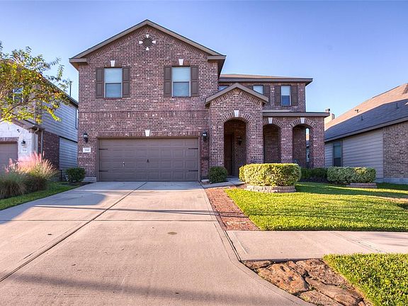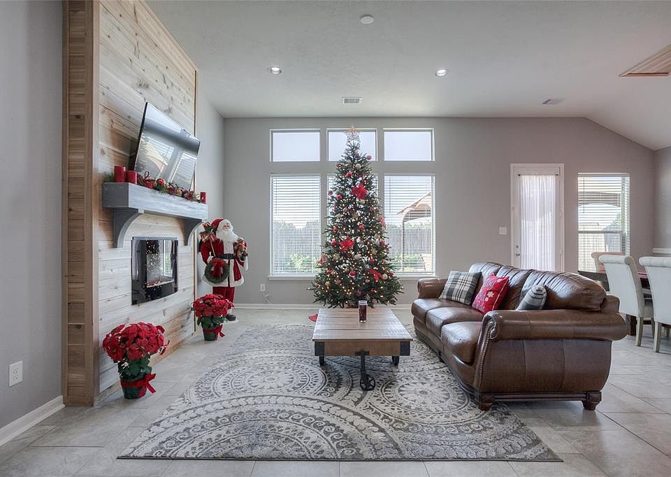 STUNNING 2013 better than new build boasts over $33,000 of recent upgrades/updates! True 5 bed/2.5 bath home! Amazing open concept floorplan! Giant Quartz island kitchen boasts new stainless appliances, huge farm sink, wine cooler, gorgeous subway tile backsplash &stylish gray cabinets w/hardware, large pantry &barn door access to additional storage. Tremendous living area boasts soaring ceilings, gorgeous tall windows overlook backyard/greenbelt area &popular shiplap highlights cozy electric fireplace! Dining walls w/chair rail &shiplap pendant accents pretty chandelier. Beautiful oversized tile floors downstairs w/wood tile entry. 5th bed/study features barndoor access &walk in closet. Spectacular master perfect retreat! All 2.5baths upgraded! 3beds/game rm up w/awesome computer nook, incredible storage &new floors/paint. Efficient floorplan utilizes ever space! Serene covered back patio...Experience daily tranquility &make magical memories here! Zoned to new Grand Oaks HS!