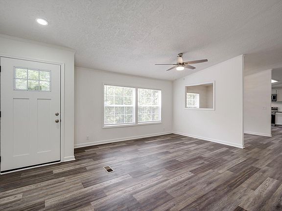 Almost 3 secluded acres, 2128 Square feet, split 4 bedroom plan, 2 1/2 remodeled bathrooms, 2 living rooms, both with shiplap wall and electric fireplace, dining room, owners bathroom with walk in closet, owners bathroom with tile shower, garden tub, his & her sink,