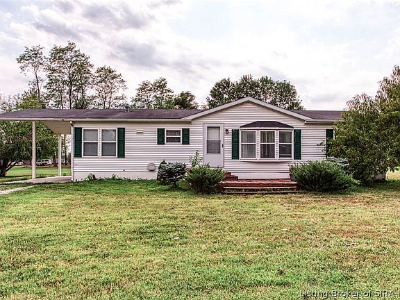 Are you looking for an affordable home with 3 bedrooms & 2 full baths on a dead-end street? Here it is!! This Sellersburg home was built in 2002 and offers neutral carpet in the living room & bedrooms. Living room offers a stone, wood burning fireplace & wood mantel and built-in cabinets. Eat-in kitchen has a pantry, gorgeous counters, white cabinets and all stainless steel appliances remain. The main bedroom has a walk-in closet, new carpet, full bath with new flooring, new stand-up shower, new sink & a garden tub. Split bedroom design and bedrooms are a nice size. HVAC, water heater & appliances 2013. The lot is .47 of an acre and offers a nice shed with roll-up door to store all your lawn equipment. 1-car attached carport to keep your car from the elements. Being SOLD “AS IS”. Call before it's too late.
