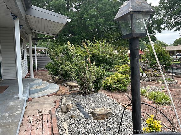 Unique home on the east side of Muskogee with 4 bedrooms, 4 bathrooms, and 3 living areas. A few different items you will not find in every home is a screened in covered patio, a redwood sauna and two kitchens. Two AC/Furnaces and two hot water tanks for this large home. Storage building in fenced backyard. There is a french drain all the way around the house that empties into the street. Quiet neighborhood.