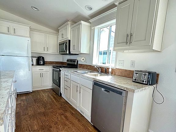 2021 manufactured home at all age park - Lakeside Village! 3 bedrooms, 2 bathrooms, storage shed. Amenities and activities include: peaceful walkways along streams, heated swimming pool and indoor spa, book and movie library, RV and boat storage, laundry facilities, billiard room, fitness center, playground, clubhouse, putting green, on-site staff, shuffleboard court. Park rent is $917.