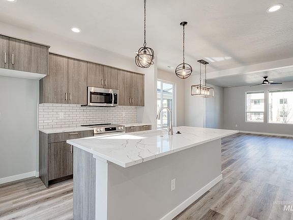 Feel enriched in your brand new home located in Meridian, Idaho! Experience contemporary living at its finest in the Carlton 1676. Enter to 9ft. ceilings that span across the main level. The kitchen comes with stainless steel appliances and stylish solid surface countertops, adding both functionality and aesthetics to the kitchen. Venture upstairs to find three comfortable bedrooms, including the luxurious primary suite, complete with a tranquil en suite bathroom. An attached alley load garage offers plenty of storage space! Photos are of the actual home!