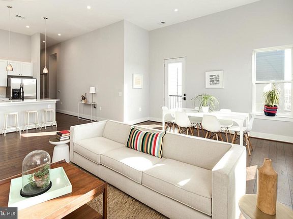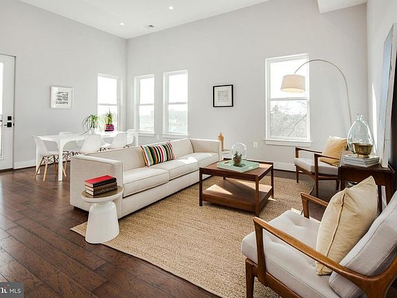 Bright, spacious, and open, this modern 2 bedroom condo is the perfect place to call home! Enter the unit to the open living area and be greeted by gleaming, warm, hardwood floors, soaring ceilings and large windows for lovely natural light. Continue through to the chef-inspired kitchen, complete with pristine marble countertops, tiled backsplash, and a large island perfect for entertaining. Other kitchen features include a gas range, stainless steel appliances, and plenty of cabinet space to store all your kitchenware. Through the main hallway you'll first find a well-sized multi-purpose room that can function as an office or a den. The spacious primary bedroom includes a walk-in closet and an en-suite bathroom complete with a glass shower and natural oak vanity. The second bedroom includes a large closet as well with a second bathroom right next door, including a large tub and lovely tiling. An in-unit washer/dryer rounds out the space. This home comes with an assigned parking space in the back of the building as well! The assigned private space on the community rooftop is the ideal setting for dining al fresco on warm spring and summer days! Only minutes from the Georgia Avenue Metro (Green/Yellow), getting around the city is a breeze! A few blocks away from Georgia Avenue's express bus lines means getting downtown or to Silver Spring is simple. There is an abundance of dining options along Georgia Ave, including Call your Mother for bagels, No Kisses for a drink, or Sonny's for pizza. This unit is also close to the 11th Street Corridor, a trendy spot filled with bustling restaurants/bars like El Chucho, RedRocks, and Wonderland Ballroom. Security deposit is equal to one month's rent. Tenants responsible for electricity. Pets are welcome! Nest DC happily accepts applicants whose rent is paid either in part or in full via rental housing assistance provided by the District or federal government.