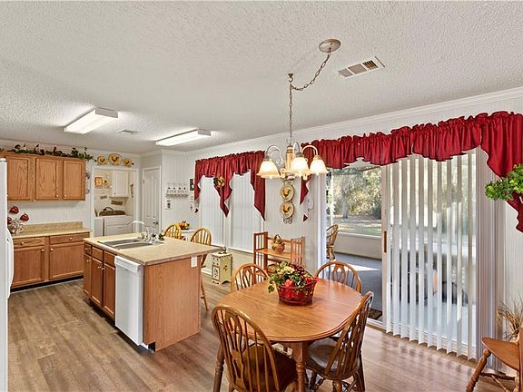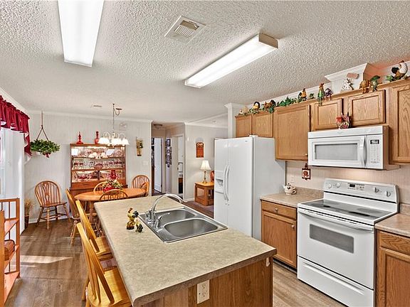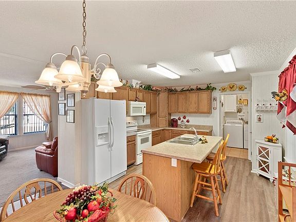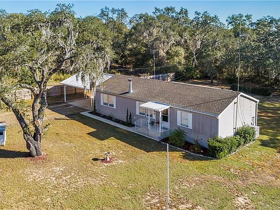 Welcome home! This beautiful manufactured home has been lovingly cared for and sits on just over 1 acre with plenty of room between you and the neighbors. The property features a long private drive, a large storage shed and workshop, a pole barn, and a carport which can accommodate parking for two cars. Step into the home and enter a large living room with a cozy fireplace. The floorplan is split with the master to the left, and two bedrooms and a guest bathroom to the right. The kitchen is nicely sized and features a kitchen island with a sink and room for seating. It has plenty of cabinet space, a new dishwasher, and large windows that give you beautiful views and plenty of natural light. A dining nook sits just off of the kitchen and has sliding doors to the screened lanai. Enjoy decorative touches throughout the home like laminate wood flooring in the kitchen and crown molding throughout the home. The master suite is private and has a master bath with a corner garden tub and walk-in shower. Step out onto the 28x12 screened lanai and enjoy peaceful views with the privacy of no rear neighbors from the spa. Enjoy the freedom of no HOA restrictions, and plenty of room to park your boat or RV. Also enjoy the tankless hot water heater, vein pump on the well, and new washing machine. This home has something for everyone, and plenty of room to build or expand. If a quiet country setting just minutes from shopping, dining and all the conveniences is what you're looking for, this is the one!