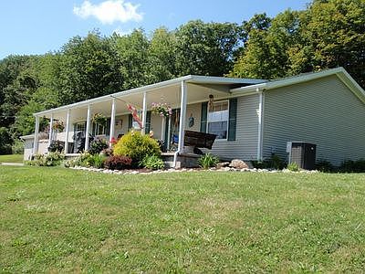 Beautiful setting with this manufactured home on a permanent foundation. Gas Fireplace in living room, equipped kitchen, ready to move in. Laundry room with 1/2 bath. Lots of closets, kitchen open to dining area. Mbath has garden tub w/jets to sooth. Gas hooked into main line therefore cheaper rates. Over sized 2-car attached garage. Covered front sitting porch to enjoy the view. All this on approx 4 rolling acres. Water and sewer are with the Rutland system and run approx $98 month. Driveway is shared. Dish Network - TV/internet, Frontier - phone.