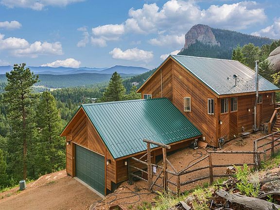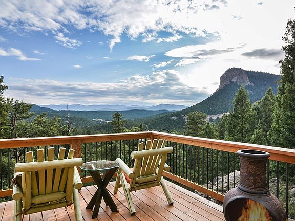 Stunning & Dreamy Colorado Mountain Retreat! Sit on the peaceful & serene wraparound deck while being blown away by one of the BEST, UNIQUE & GORGEOUS views on the mountain. Take in the fresh air, observe the wildlife, or stargaze on the wrap around deck looking South to Pikes Peak & North Lion's Head. Inside you will love the wall of windows, high-end upgrades throughout, gleaming hardwood floors, high-end kitchen boasting granite & stainless-steel appls, open floor plan, master suite & more! The hardwood floors flow from the living room to the master suite, bed & bath. Wake up to amazing viewst. Master suite includes beautifully crafted 5-pc bath. Downstairs 9ft ceilings allow you to enjoy the view & light. Lower bed, living rm & updated bath. NEW home is also energy efficient-fully OWNED solar system! Staunton State Park just around the corner! Hwy 285 only mins away for access to Denver in 40 mins or the mountains for adventures including hiking, fishing, skiing, camping & more!