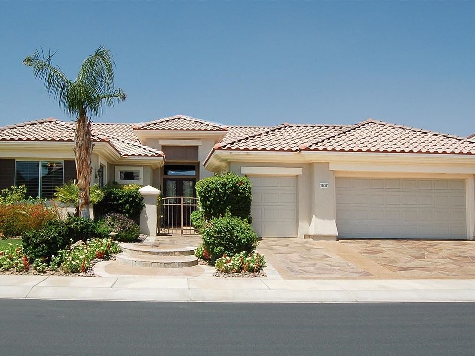 This Extended Monaco model 3/3 has it all. Huge double sliders welcome you to the fabulous yard, which has a spectacular waterfall feature, Built-in BBQ kitchen, large spool, fire pit, fruit trees, easy maintenance turf and raised flower beds. The extended master bedroom has a French door to the backyard. The kitchen has granite, stainless, raised panel cabinets, and opens to a large family room and dining area with a French door leading out to the yard. The 2nd suite is a perfect bedroom or office. There is an extended attached casita with its own bathroom and private entry from the courtyard. All patios and walkways have a classy concrete overlay. Possibly the best feature is the $46,000 solar system, all paid for and doing a great job saving money every month. This home sits on a 10,000+sf. lot in the newest north area of Sun City. The 2 car + golf cart garage has epoxy floors and cedar lined cabinets.