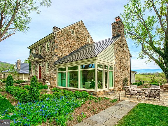 Breathtaking with superb colonial architecture on twenty-one sweeping Blue Ridge acres, “Hearthstone” is a home of history, telling stories connecting a King, a President, plantation life, and war-time cautionary tales. Exquisitely renewed and reimagined since its mid-1700’s origins, architects and craftsmen alike have each ensured preservation of the property’s long memories, while creating access and modern amenity for memories yet to come. Today, the main house is an elegant masterpiece of award-winning design lined by original hardwoods, exposed hand-hewn wood beams, graceful trimmings, recessed Shaker cabinetry, standing-seam metal roof, and charming walls of stone. Caring for modern life, you’ll appreciate new utilities, serene bathrooms, open rafters, and replaced windows of Appalachian views. Warm holiday traditions near fireplaces featuring distinguished mantles, revisit best loved reads in the sunroom overlooking beautifully laid botanicals, host dining room meals near the original kitchen hearth, and let guests gather for conversation in the cheerful pomegranate-hued kitchen where professional-grade appliances, endless cabinetry, and luxurious finishings inspire. While the lower level’s radiant heat floors create a cozy space for casual evenings in, guest stays, and wine room tastings, outside, stone paths and patios welcome party guests where the fountain, manicured gardens, and wildlife on the pond add atmosphere. While touring, visit the sunny fully independent two-bedroom guest house, detached garage with loft storage, and don’t miss hearing of the property’s captivating past. “Hearthstone” enjoys exceptional pastoral privacy, with proximity to the hunt life, wineries, wildlife sanctuaries, historic townships, and country clubs which shape the region. While Hillsborough is just ten minutes Northeast, downtown Round Hill is the same distance to the South. Here, discover quaint tree-lined streets where former lodges and boarding houses have given way to residences and shops. Once a summer destination on the W&OD line, today Round Hill visitors enjoy local festivals and a thriving outdoor culture where hikers flock from around the country to experience the natural beauty of scenic Appalachian Trail.