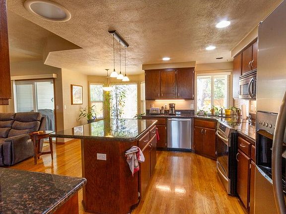Explore the charm of Larson Creek neighborhood with this meticulous home that backs up to Larson Creek for added privacy. Enter the front living room that takes in natural lighting and overlooks the beautifully landscaped front yard. The spacious kitchen features an island bar, sleek refinished cabinets, stainless steel appliances, and granite counters. Enjoy breakfast in the cozy nook and the views of the pergola covered back patio. The family room seamlessly connects to the expansive backyard. Retreat to the generous master suite with another slider leading to the backyard oasis. Conveniently located near shopping, dining, and Asante medical facilities, and bordered by scenic trails along Larson Creek.