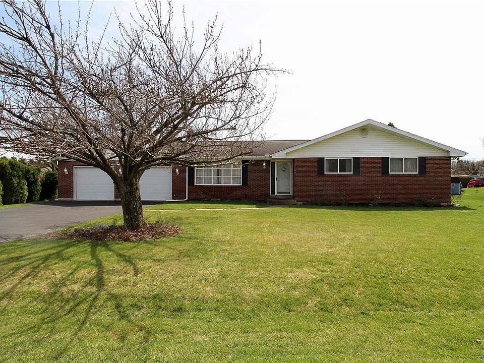 A Home For All Seasons - Whether you are relaxing inside next to your wood-burning stove or entertaining on the covered patio, this home can accommodate! Walk in to this delightful Ranch style home with a sun-filled Living Room on one side and an Office on the other. The Living Room is very spacious with a view of the neighborhood and is adjacent to the Dining Room. The Dining Room is roomy enough for your dinner parties and is conveniently located to the Kitchen. The Kitchen has a layout that allows everything at your fingertips - electric cooking, dishwasher, refrigerator and plenty of cabinetry. Adjoining the Kitchen is an Eating Area with a built-in buffet with storage and walks out to the covered patio through the sliding glass doors. The Office/Den could easily double as a guest room as needed. Down the hall are three nice-sized Bedrooms which include a Master with access to the Hall Bath. The basement houses an expansive Recreation Room complete with bar and cozy wood-burning fireplace insert. A great deal of extra space in the basement with a large Laundry Room, Workshop Area & Storage. Enjoy your outside space on the covered patio and tons of green space. Did I mention an oversized garage that can house 3 cars!! The key to happiness certainly resides here!