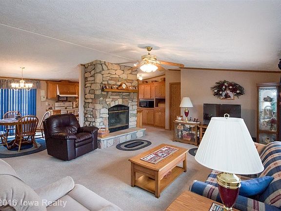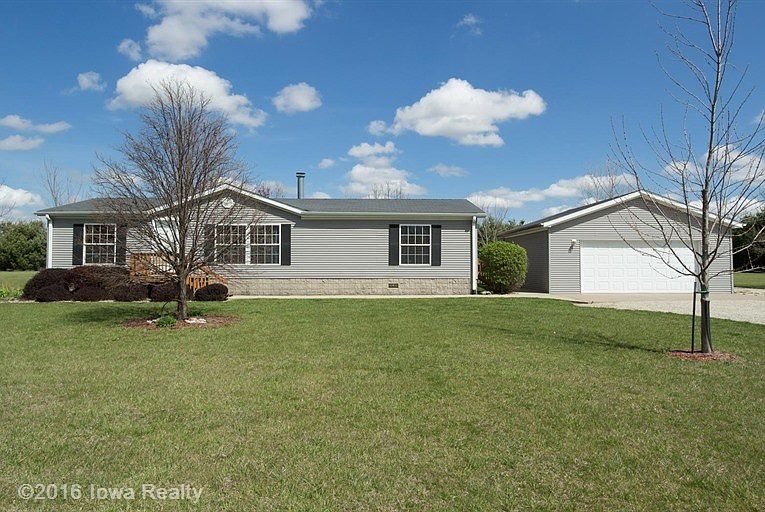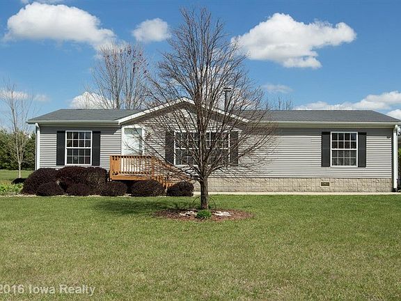 Don't miss out on this acreage located just 25 minutes from WDM and on pavement! This ranch home is situated on almost 6 acres w/ large evergreen trees giving you nice privacy! As you pull up, you will admire the beautiful landscaping and lush yard. The home features a large vaulted LR that opens into your spacious kitchen w/ plenty of countertops for you to enjoy. The master is conveniently located on the opposite side of the other bedrooms. Relax in your spa tub in your master suite after a long day. It also has a nice 10x12 storage shed for additional storage. The home features a storm cellar. This home has pride of ownership and is just immaculate in every way! This home will not last long, so call for your private showing today!