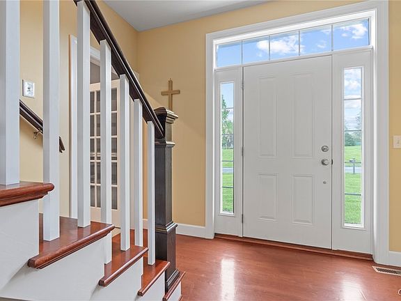 Just minutes from Skaneateles village bordering a natural conservation area this magnificent 4 bedroom (3) full bath (1) half bath home sits on 3/4 acre in the award winning Skaneateles School District Featuring 3,027 sq. ft. with additional 1508 sq. ft. finished walkout basement. With incredible space the open concept features a gourmet kitchen and spacious family room that allows for hours of entertaining guests. Host formal dinners in the sun splashed dining room adjacent to a home office/den The second floor features a primary suite with Builder's custom walk-in closet system and connects to an awesome finished bonus room. Downstairs the walkout basement features an additional 1500 sq ft. of finished living space. There are hardwood floors throughout on the first floor, central air conditioning and public water. Sellers installed EV charger for charging electric vehicles in 2024 This is a one owner home and is the outstanding value you have been looking forward.