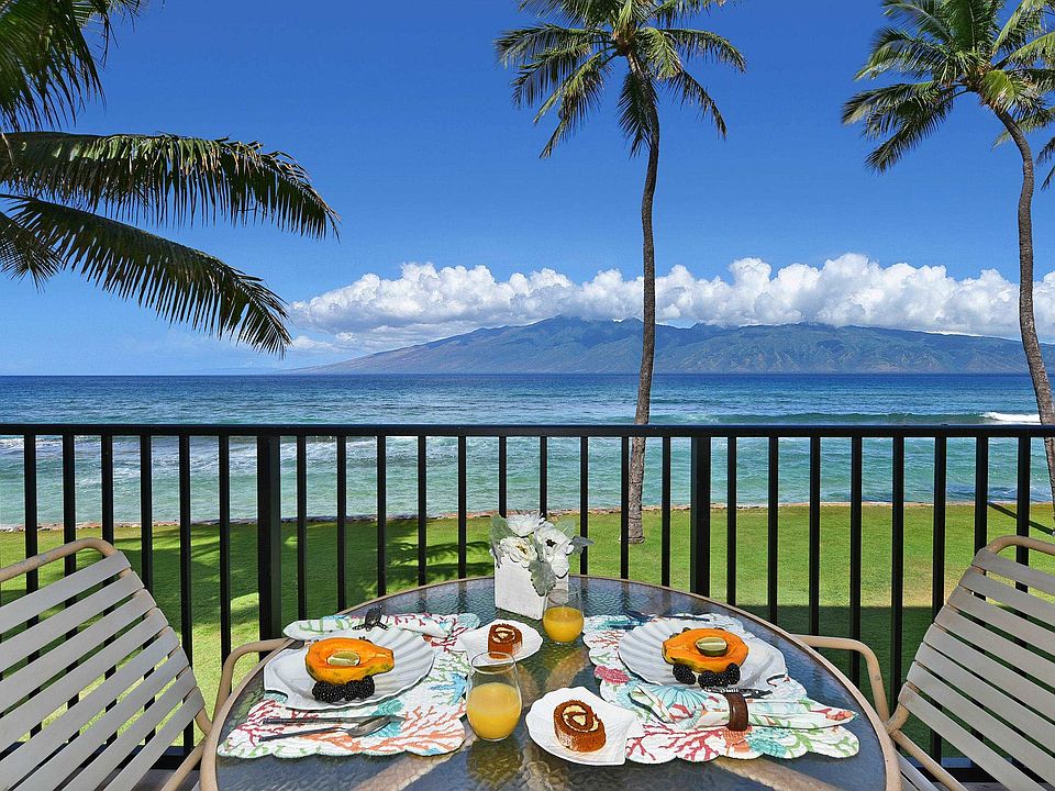 MOST DESIRABLE LOCATION - DIRECT OCEANFRONT, RARE END-UNIT CORNER CONDO at Papakea Resort minutes from Lahaina, Ka’anapali, Napili & Kapalua beaches & golf courses. • Enjoy the panorama of Moloka’i & Lana’i from your west-facing unobstructed, extra-large wrap-around patio (186 sq. ft) for seasonal whale watching & year-round sunset viewing 25 ft from the ocean’s edge! • Located in the coveted “F” building, this 2nd floor condo is the largest 1 bed, 1 bath on property – 1 of 12 in the 364-unit, low-rise complex & rarely for sale. 814 sq ft of interior/exterior space. • End unit kitchen offers extra counter space cabinets & window, extra-large living room window, bathroom double sinks, extra bath window & linen closet. In-unit washer/dryer. • Walled mirrors expand your ocean view from the hall entry, kitchen & living area. You’ll never tire of the ever-changing views, soft crashing waves & tropical bird sounds! • Best complex location & views of 2 Hawaiian islands = high vacation rental income potential. • Sold w/ furniture* & all living amenities making it turnkey for you. • Resort has 2 pools & hot tubs, 12 BBQs, 2 12-hole putting greens, 2 shuffleboard courts, 3 tennis/2 pickleball courts + daily activities – yoga, aquacise, lei making, Mai Tai nights. 24 hr. front desk service & on-site concierge. • Visualize your new condo & island life here: www.ResortatPapakea.com • Beach access next door + Ka’anapali Food Truck park w/ 8+ cuisine options. • Across the street: Times Supermarket, a coffee shop, deli, pizza, gelato, live music club, access to urgent care. Whaler’s Village shopping & dining 5 min away.
