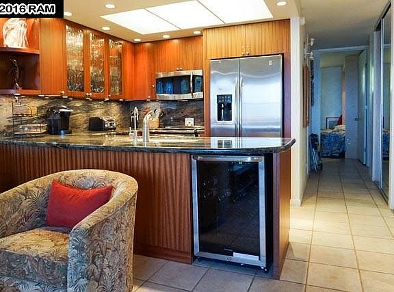 Oceanfront, luxurious and affordable - that's an unbeatable combination. From your living room, kitchen and lanai of Papakea L-106 you will enjoy expansive views of the Pacific and Molokai. It's as if the ocean is your front yard and you get to enjoy the sight, sound of the waves and the feel of the soft ocean breeze at your doorstep. Add to this stunning setting the stunning villa itself. L-106 has been luxuriously reinvented from the ground up to make it one of the most beautiful condos at Papakea Resort. The floors are all tiled, which is exactly what you want in your oceanfront condo. The tile is easy to care for and helps keep the condo cool. The kitchen is art. The owners selected a gorgeous granite accented with streaks of ebony and sea green. It beautifully offsets the custom hardwood cabinetry with special touches like the palm relief glass doors. And, of course, it is outfitted with stainless steel appliances, including your own wine storage unit. The 2 full bathrooms are designed using the same hardwoods and granite for the raised vanities. The master shower is double width and finished with a Maui themed and accented stone tile. Papakea L-106 enjoys the comfort and economy of a modern split system air conditioning. The laundry has been updated with a new front loading washer and dryer. L-106 can be a very special second home. And, if rental income is important, consider that this 2 bedroom unit can sleep up to 8. The guest bedroom has a Murphy bed as well as bunk beds, and there is a queen size sofa-sleeper in the living room.