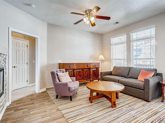 Rarely available 2 bedroom, 2 bath condo in The Broadlands just off the golf course. Great schools. Easy access to shopping, restaurants, Boulder, Denver and the airport. Attached 2 car tandem garage. Walk-in pantry. All appliances are new and included. Balcony off the dining area. Large family room with new fireplace. New interior paint, new exterior paint and new 2" blinds throughout. Laundry room with included washer and dryer. Quick possession available. The community features access to 2 swimming pools a clubhouse and a fitness center. Enjoy fishing at nearby Mckay Lake and Plaster Reservoir. Easy access to walking trails, parks.