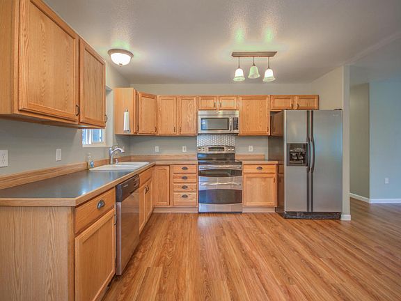 Like new Ranch home with in-floor heat! 2 bedroom, 1 bath. Large open kitchen, dining, and living area. Wood stove for extra comfort. Outside fire pit and fenced area. Quiet area off culdesac. All new flooring throughout! New paint. Stainless Appliances. Efficient home.